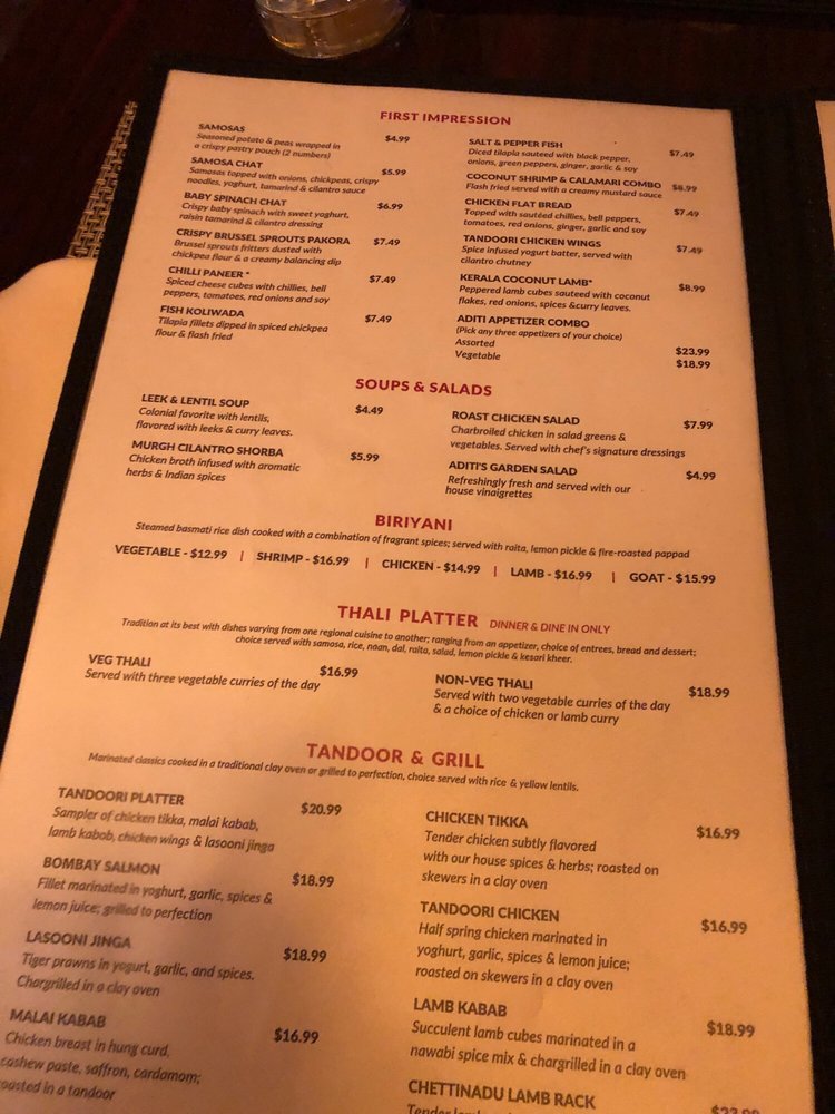 Welcome to Aditi Indian Dining, a gem nestled in the heart of Alexandria, VA. Here, the vibrant tapestry of Indian cuisine comes alive, offering tantalizing dishes that promise to satisfy any palate. The menu features favorites like butter chicken, malai kofta, and an array of vegetarian and pescatarian options. Each dish bursts with flavor, ensuring a delightful culinary experience.